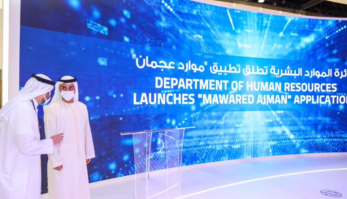 أطلق الشيخ أحمد بن حميد النعيمي ممثل صاحب السمو حاكم عجمان للشؤون الإدارية والمالية تطبيق الهاتف الذكي ” موارد عجمان” لموظفي حكومة عجمان الذي نفذته دائرة الموارد البشرية و يتضمن قائمة الخدمات الذاتية الرقمية.