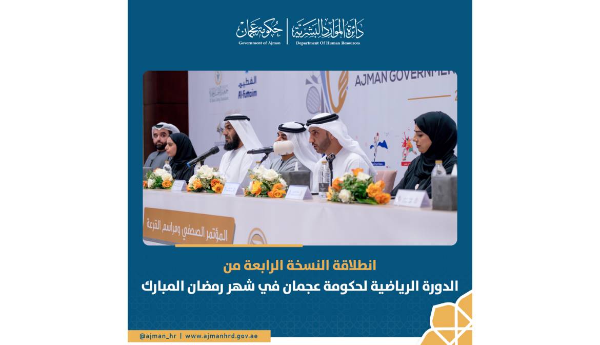 تحت رعاية سمو الشيخ عمار بن حميد النعيمي- ولي عهد عجمان -رئيس المجلس التنفيذي ، تنظم دائرة الموارد البشرية بالتعاون مع مركز كواترو الرياضي الدورة الرياضية لحكومة عجمان في نسختها الرابعة التي تضم 11 برنامج متنوع من البرامج والبطولات التنافسية والترفيهية لكافة فئات المجتمع خلال شهر رمضان المبارك .