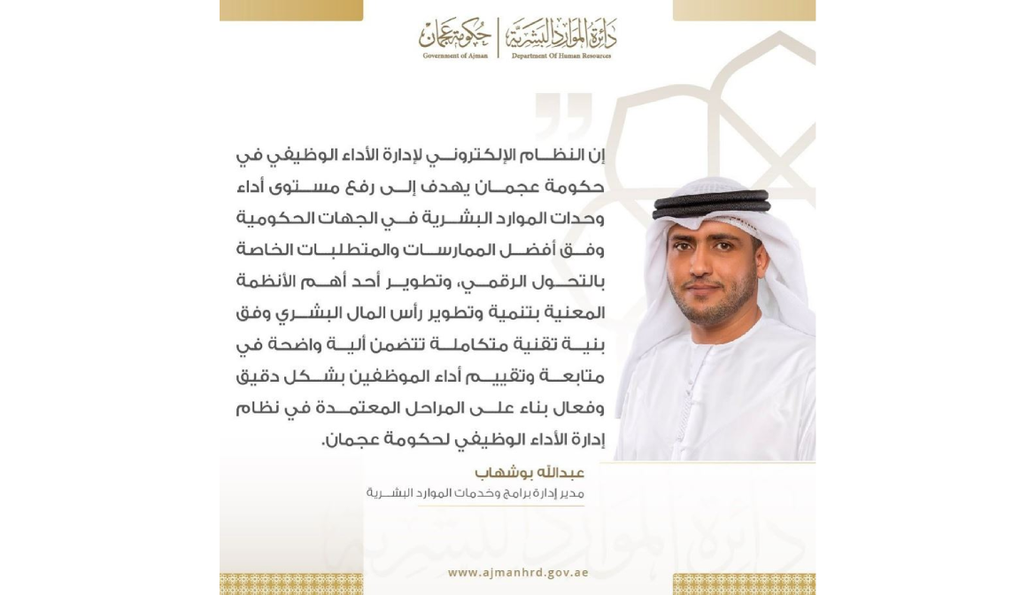انطلاق إدارة الأداء الوظيفي الإلكتروني لموظفي حكومة عجمان للعام الجاري