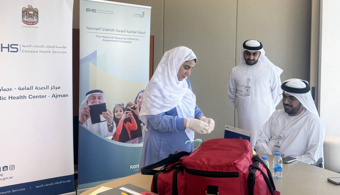 عجمان، 11 نوفمبر 2024 في إطار حرصها على تعزيز جودة الحياة والصحة العامة، نظمت دائرة الموارد البشرية في حكومة عجمان بالتعاون مع مؤسسة الإمارات للخدمات الصحية حملة تطعيم شاملة لموظفي حكومة عجمان، وذلك ضمن الحملة الوطنية للتوعية بالإنفلونزا الموسمية التي أطلقتها وزارة الصحة ووقاية المجتمع تحت شعار “حصن نفسك.. احمِ مجتمعك”.