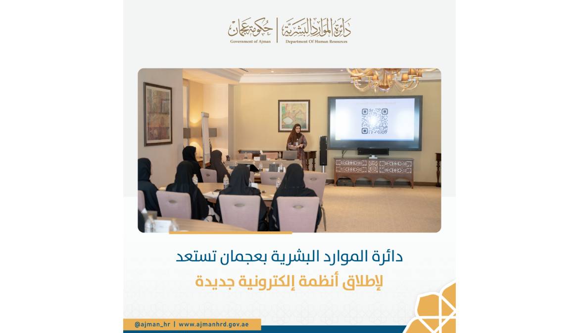عجمان: 28-5-2024 أعلنت دائرة الموارد البشرية بعجمان عن استعدادها لإطلاق أنظمة إلكترونية جديدة ضمن خططها في التحول الرقمي لأنظمة و إجراءات الموارد البشرية المعتمدة في حكومة عجمان و تشمل نظام تقييم و تصنيف الوظائف، و نظام التظلمات و الشكاوى، و نظام العمل عن بعد.