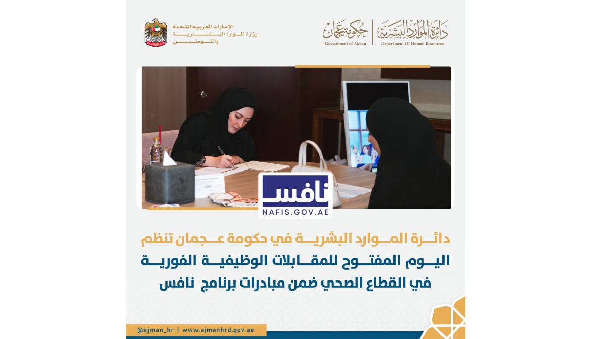 دائرة الموارد البشرية بعجمان تنظم اليوم المفتوح للتوظيف في القطاع الصحي ضمن مبادرات “نافس”