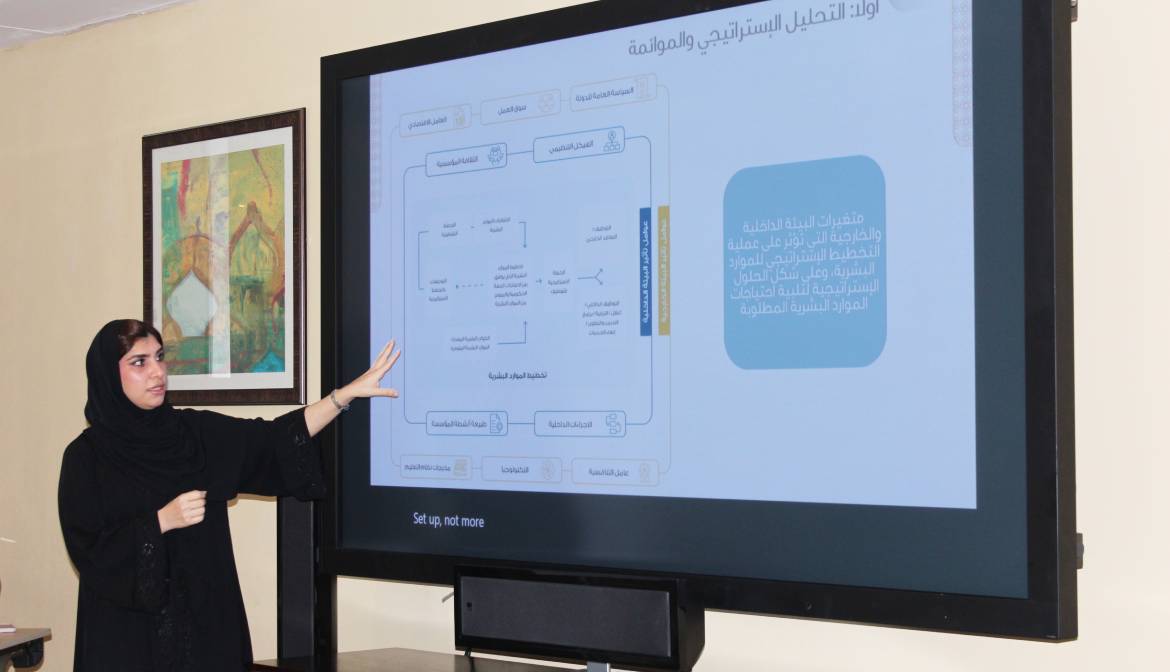 وتم خلال الورشة استعراض مفهوم التخطيط الاستراتيجي للموارد البشرية و أهميته، و المراحل الأساسية لعملية التخطيط الاستراتيجي للموارد البشرية من خلال 4 مراحل تشمل كلا من ، المرحلة الأولى تقييم الوضع الحالي للموارد البشرية في ضوء متطلبات الخطط الاستراتيجية للجهة الحكومية. من خلال بيانات دقيقة عن أعداد الموظفين ومستويات الإنتاجية ومستوى فعالية تحقيق الأهداف، المرحلة الثانية تحديد متطلبات الجهة الحكومية من الموارد البشرية اعتمادا على متطلبات المبادرات والمشاريع الواردة في الخطط الاستراتيجية والتوجهات المستقبلية للحكومة.