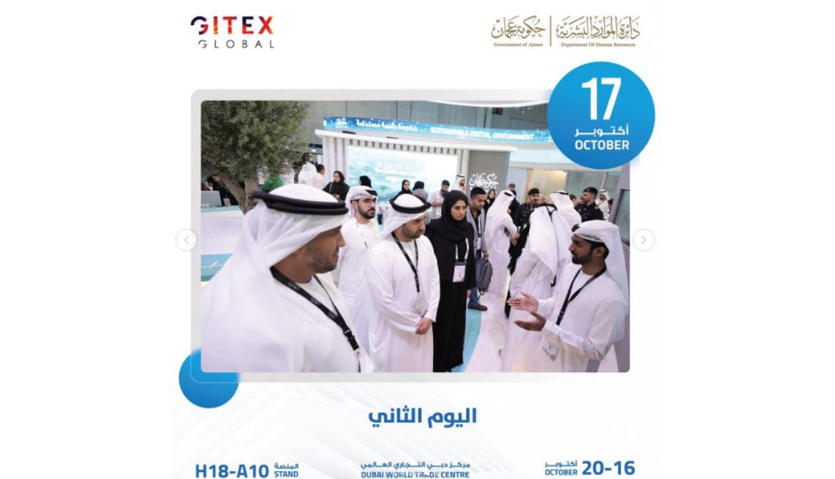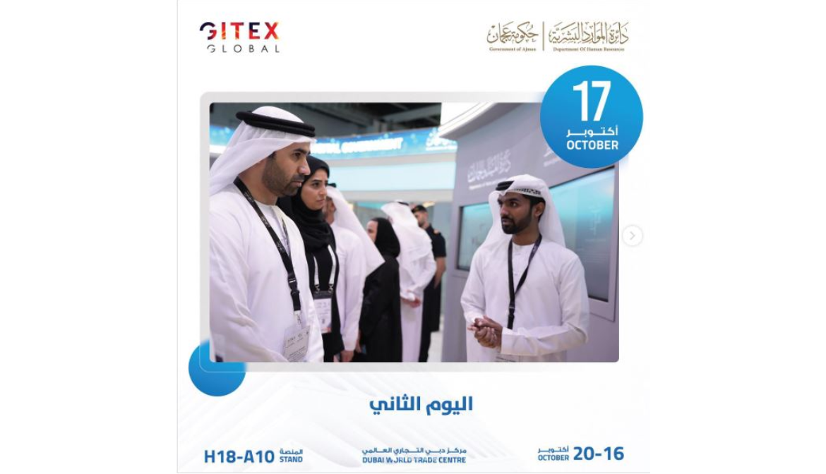 زار سعادة راشد عبدالرحمن بن جبران السويدي- مدير عام دائرة الموارد البشرية بعجمان منصة حكومة عجمان في معرض جيتكس للتقنية .