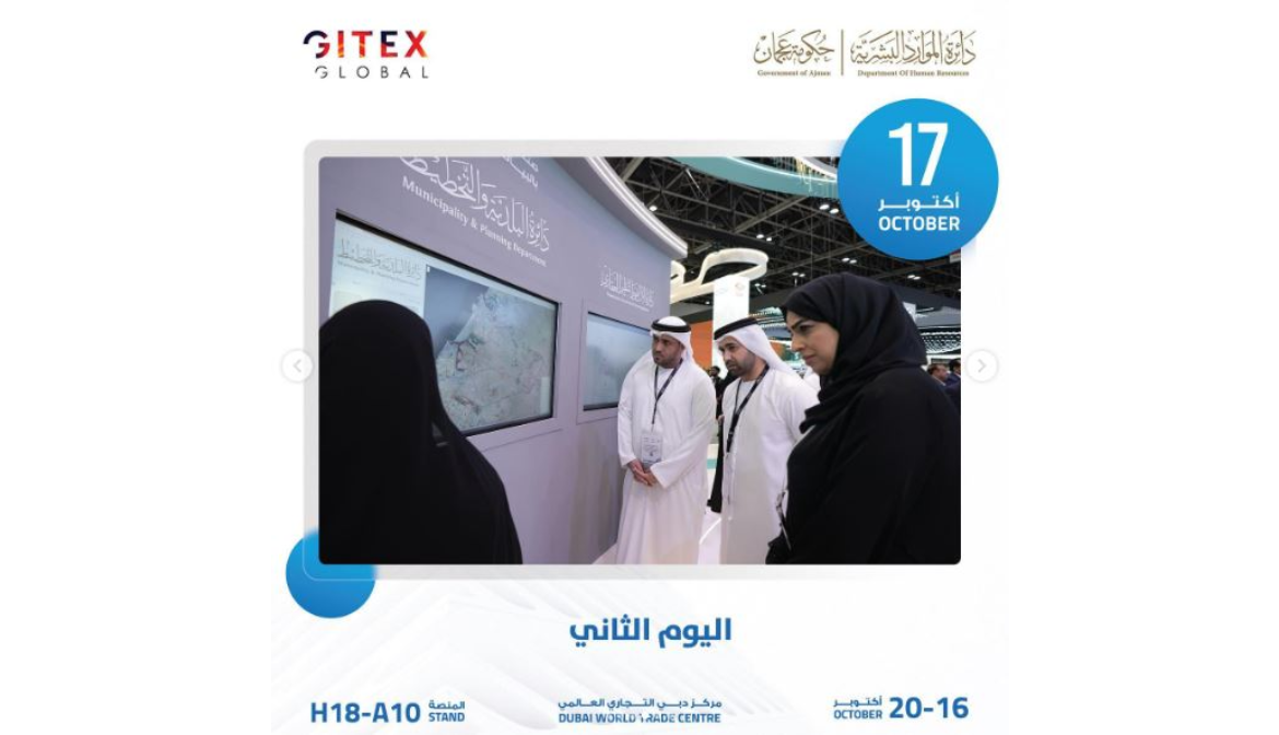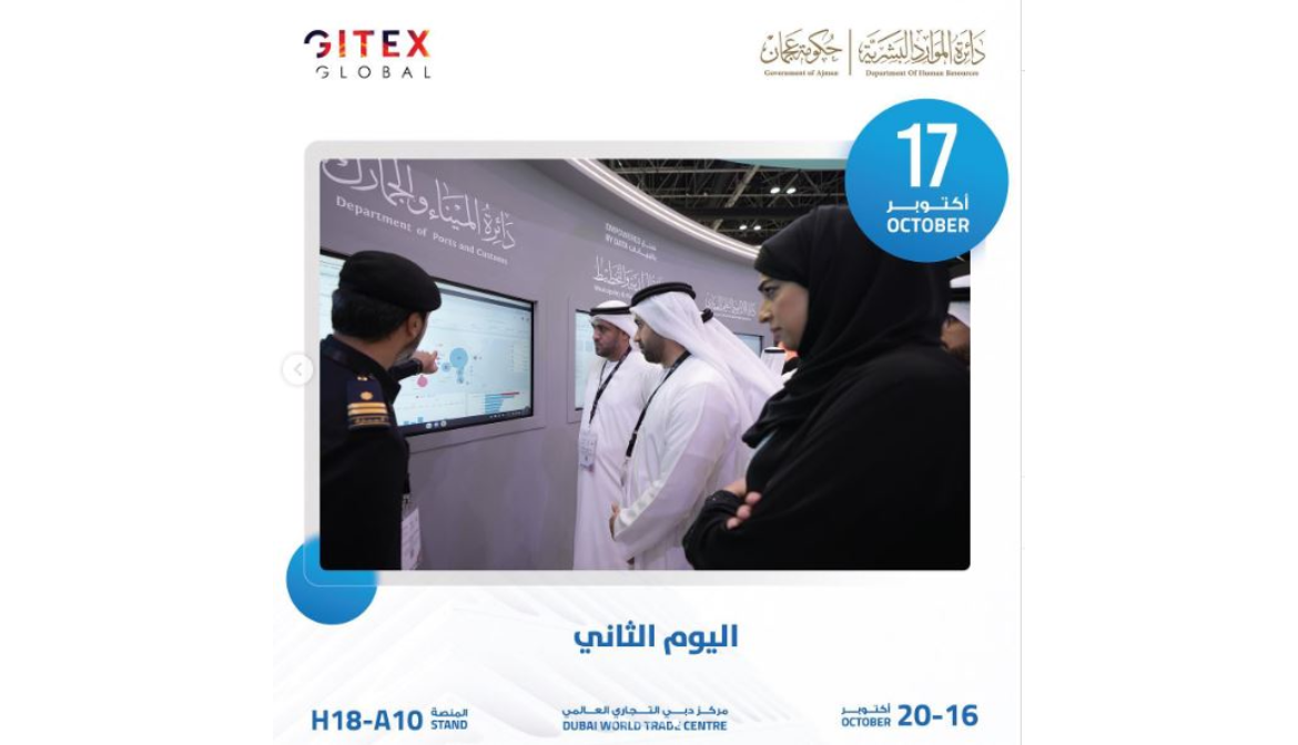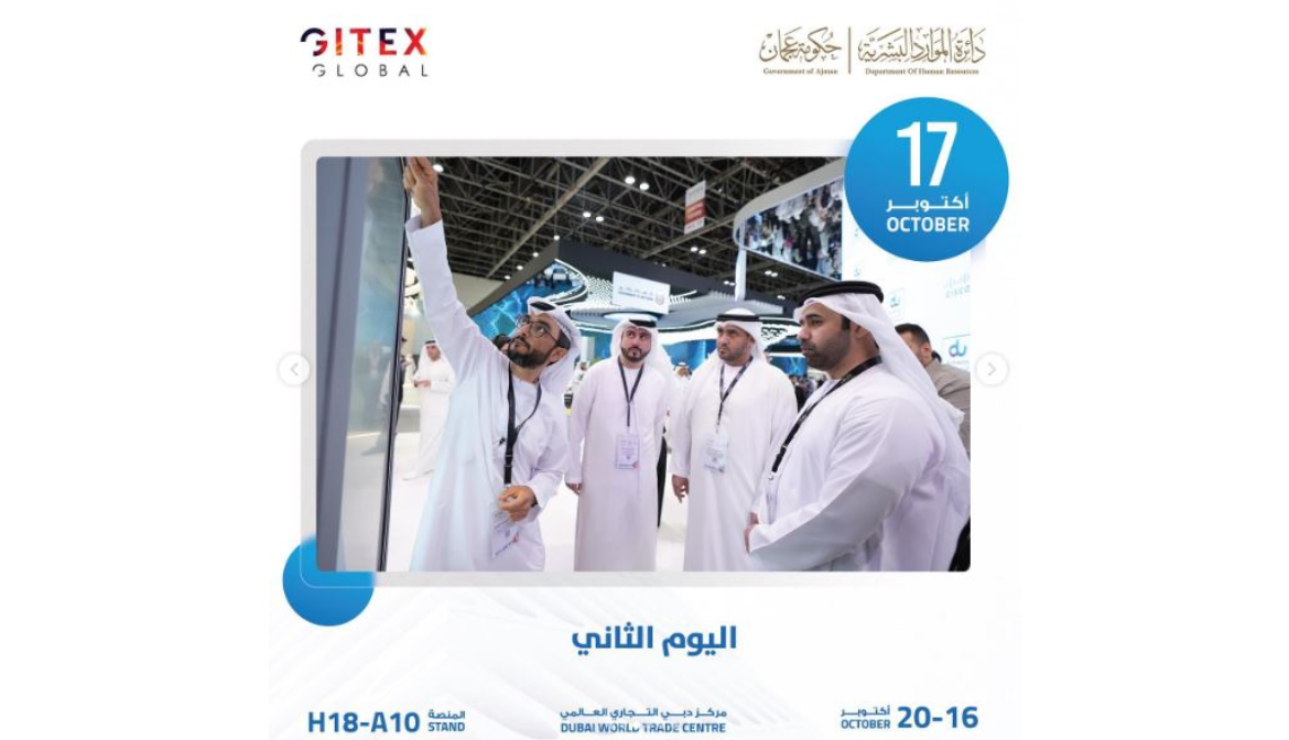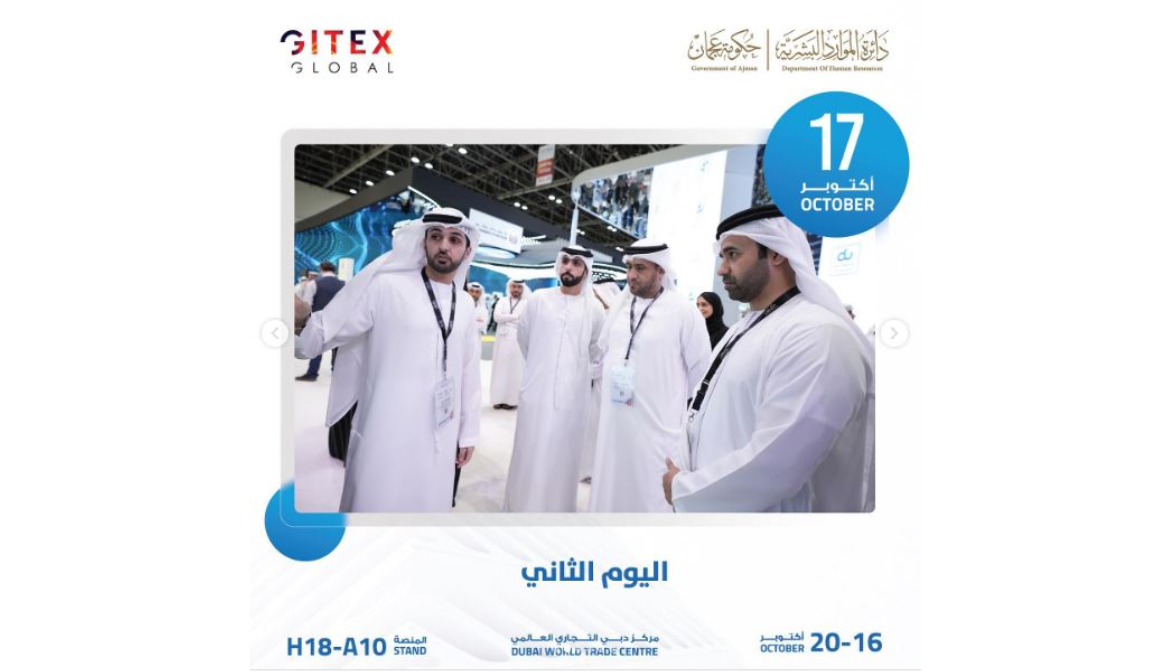 و اطلع سعادته على الخدمات الرقمية في إمارة عجمان و المنصات المشاركة في المعرض.