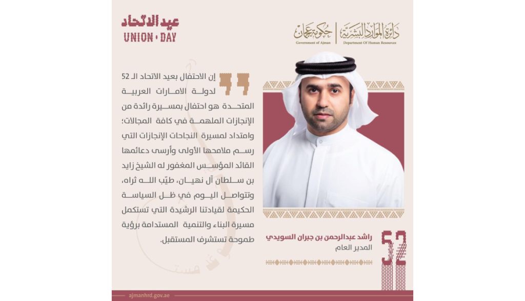 دائرة الموارد البشرية تعلن عطلة عيد الاتحاد للجهات الحكومية في إمارة عجمان