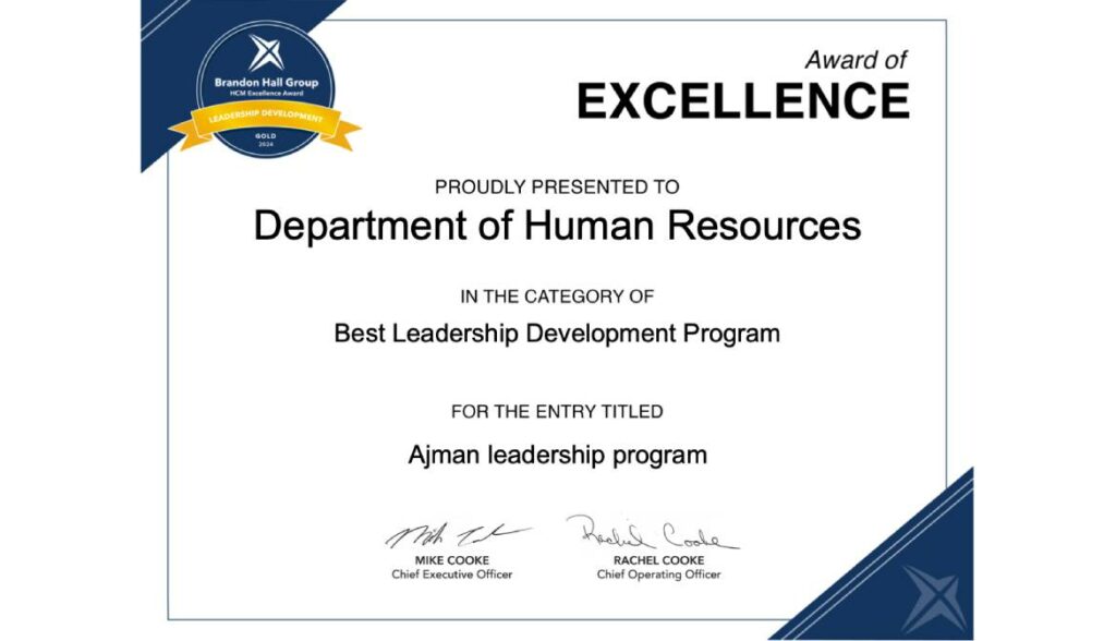 دائرة الموارد البشرية تحصد الميدالية الذهبية عن برنامج عجمان لإعداد القادة في جوائز “براندون هول” العالمية