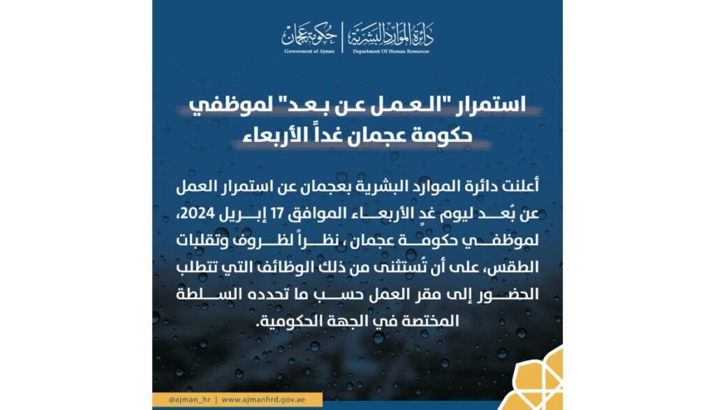 حكومة عجمان تعتمد نظام العمل المرن للمؤسسات والدوائر الحكومية