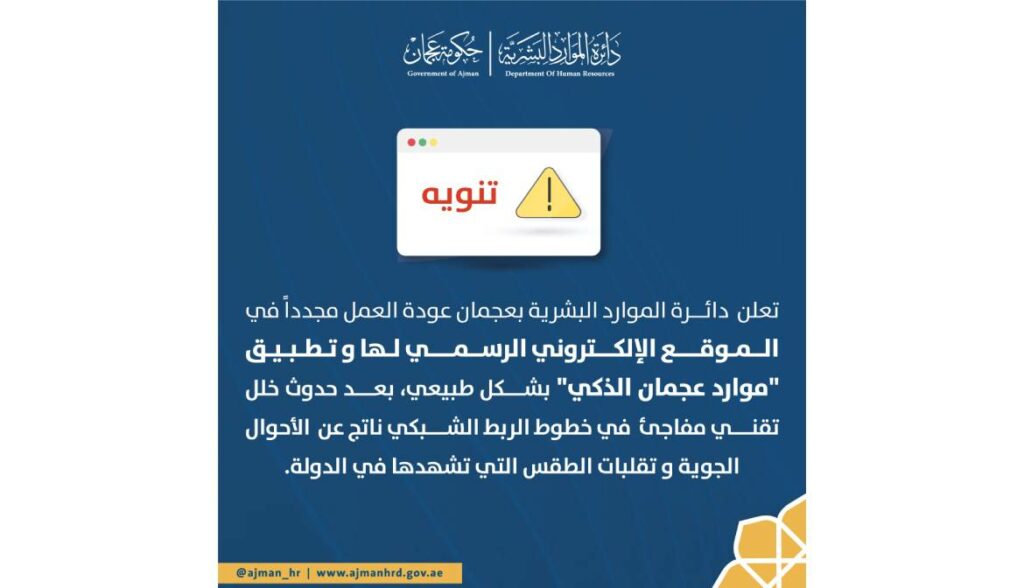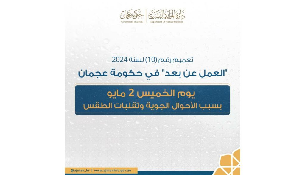 دائرة الموارد البشرية : الأربعاء 1 يناير عطلة رأس السنة الميلادية في حكومة عجمان
