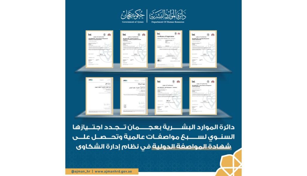 دائرة الموارد البشرية بحكومة عجمان تحصل على حقوق الملكية لـ 14 مصنفاً فكرياً من وزارة الاقتصاد