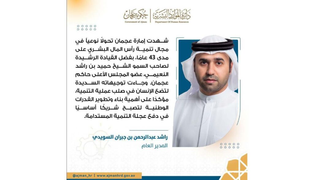 مدير الإدارة المركزية لتنمية الموارد البشرية في «تنفيذي عجمان» راشد السويدي: تطوير عمل الموظفين بأنظمة للتقييم وتحسين الأداء