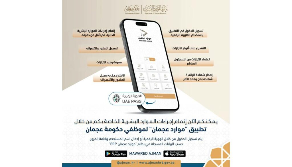 دائرة الموارد البشرية بعجمان: تطبيق ‘موارد عجمان’ يسجل أكثر من 267 ألف إجراء ذاتي خلال 2024