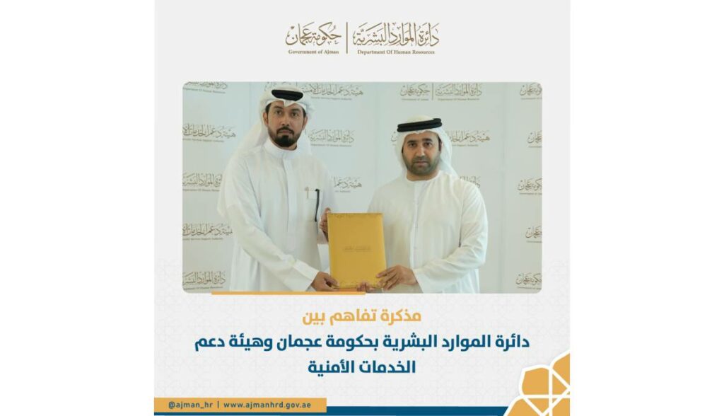 مذكرة تفاهم بين دائرة الموارد البشرية بحكومة عجمان وهيئة دعم الخدمات الأمنية