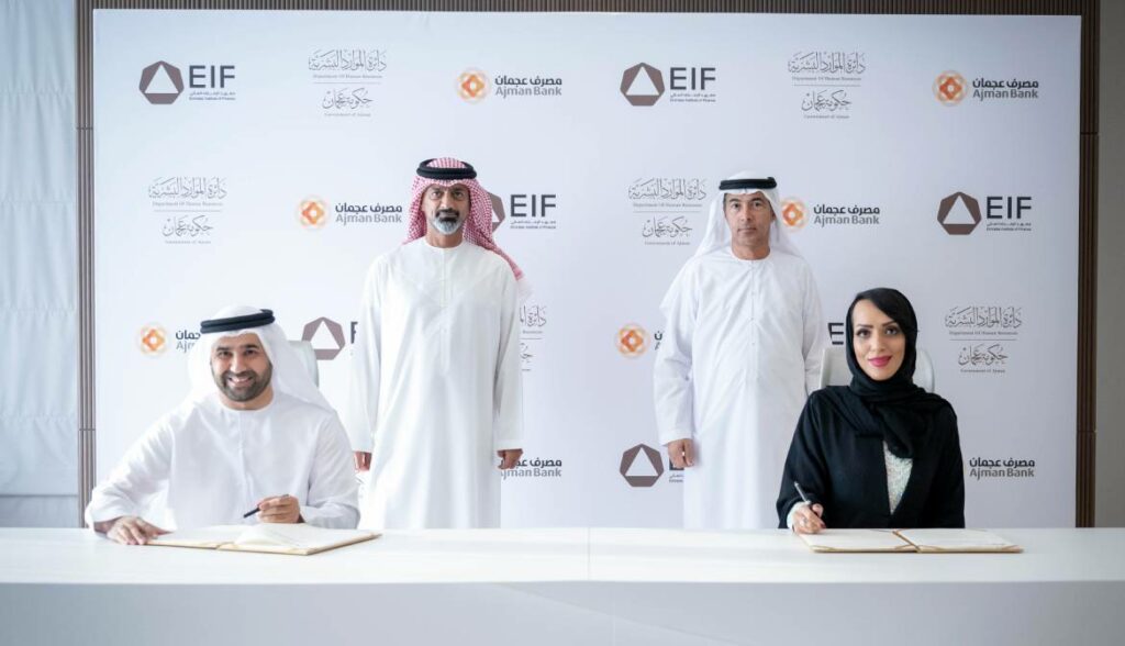 عمار بن حميد يشهد توقيع اتفاقية تعاون بين “الموارد البشرية” بعجمان ومعهد الإمارات المالي لتأهيل الكوادر الوطنية