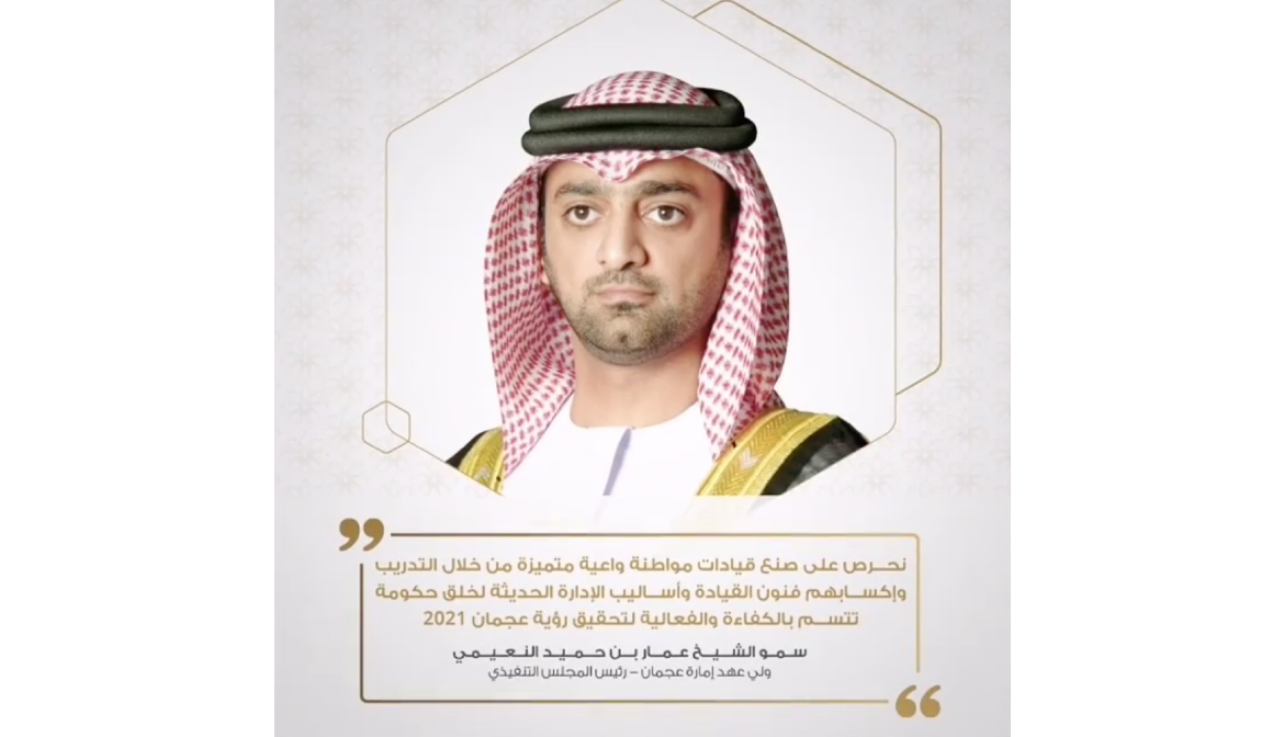 ” نحرص على صنع قيادات مواطنة واعية متميزة من خلال التدريب وإكسابهم فنون القيادة وأساليب الإدارة الحديثة لايجاد حكومة تتسم بالكفاءة و الفعالية لتحقيق رؤية عجمان 2021 “.#سمو_الشيخ_عمار_بن_حميد_النعيمي الدورة الثالثة #برنامج_عجمان_لإعداد_القادة