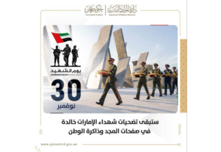 November 22, 2022 – دائرة الموارد البشرية تعلن عطلة يوم الشهيد واليوم الوطني في الجهات الحكومية بإمارة عجمان